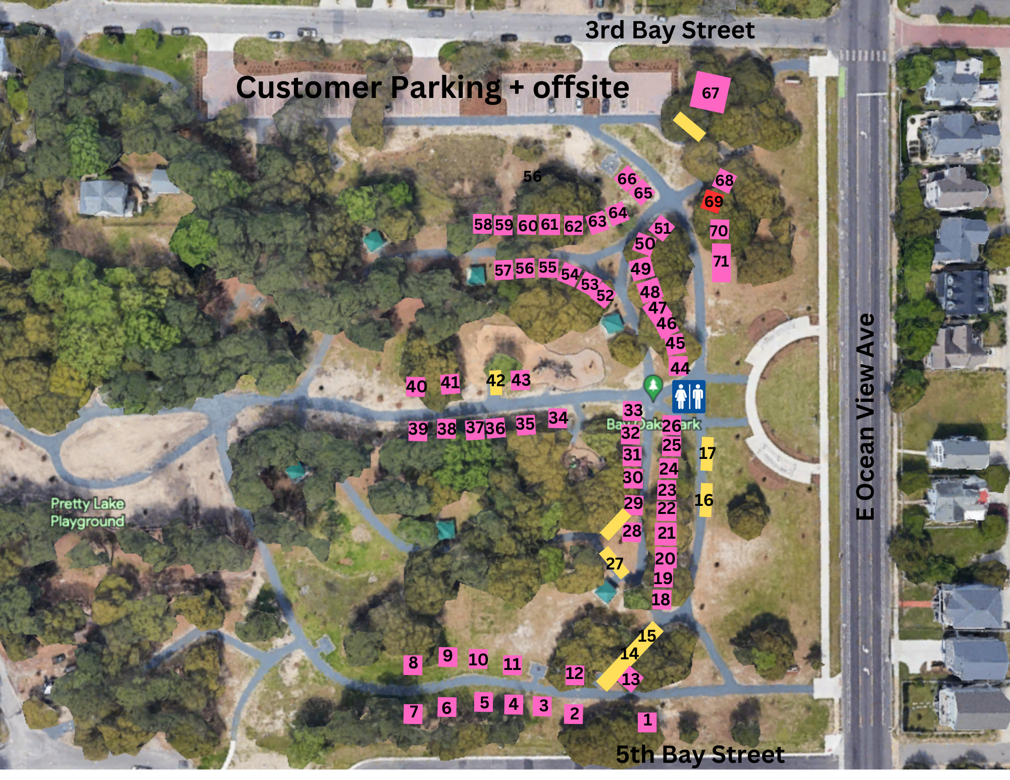 Parking: Two public parking lots are located along 3rd Bay Street, and parallel parking is available on surrounding side streets in all directions, including 5th & 6th Bay Streets and Pleasant Avenue.